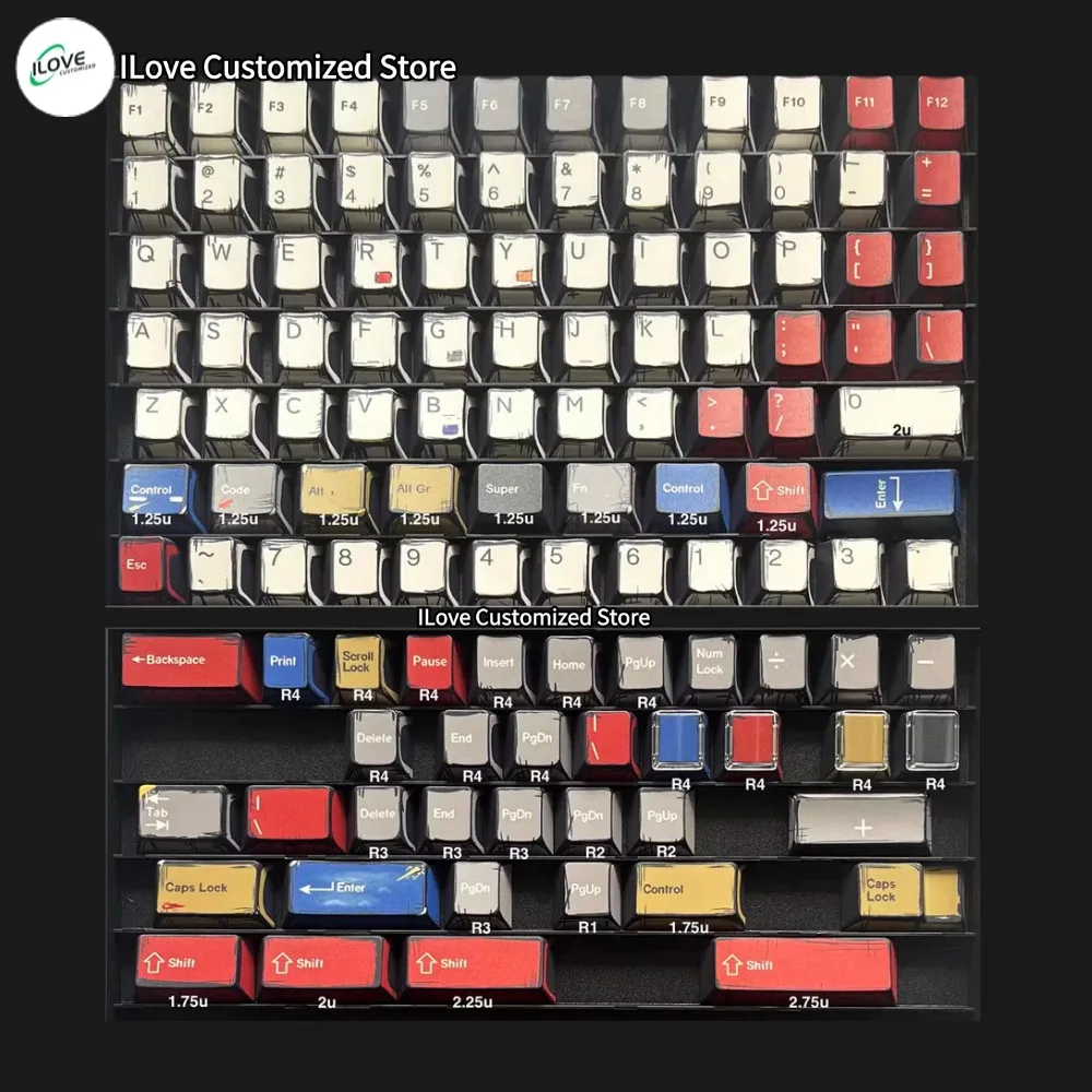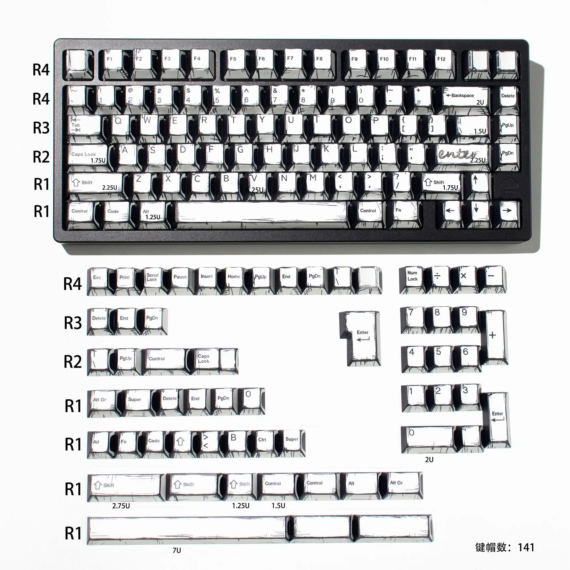 PBT Comic Style Keycaps Cherry Profile Complete Set 141 keys Keycaps Suitable Cherry MX Switches for Mechanical Keyboard - AliE