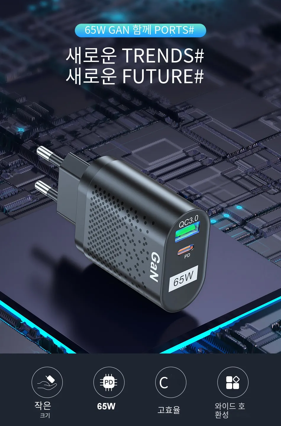 높은 출력 대비 작은 크기로 휴대성이 좋은 충전기입니다!