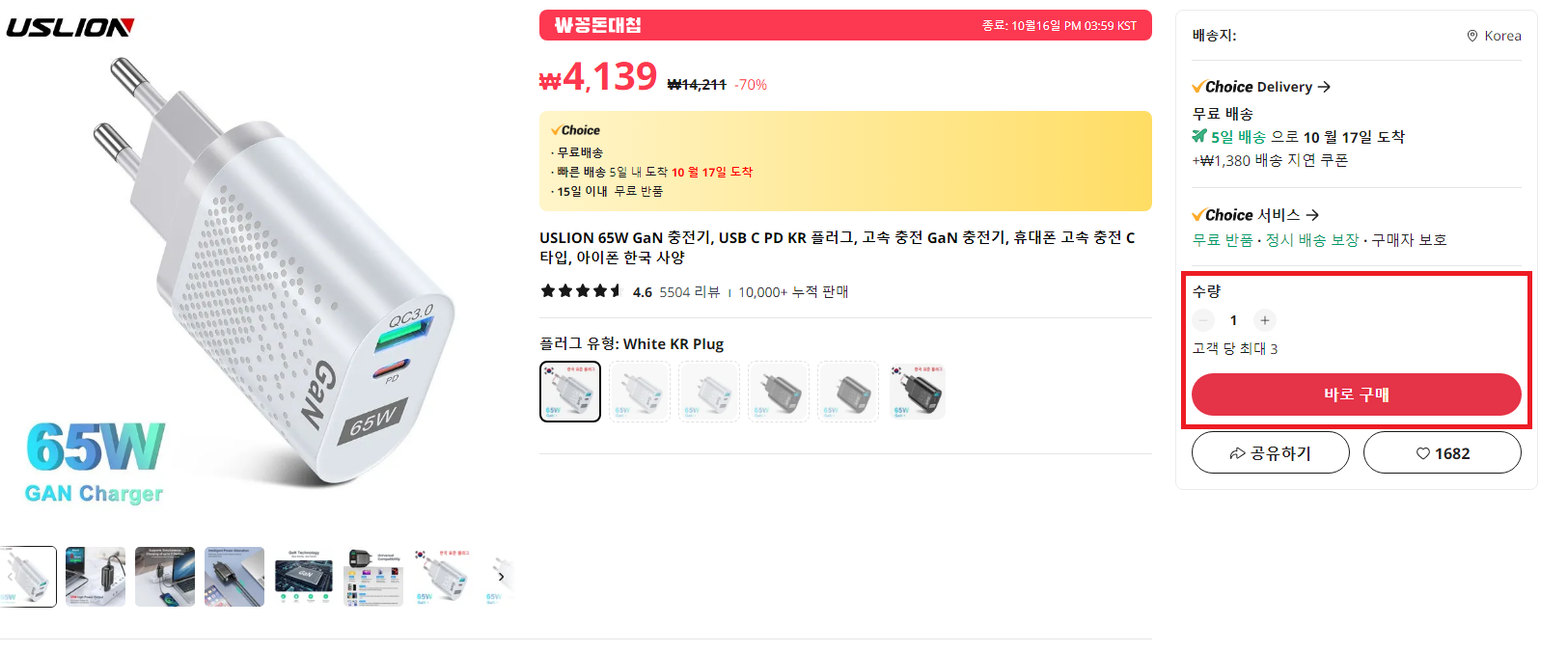예를 들어 위의 충전기를 선택해봤습니다.
