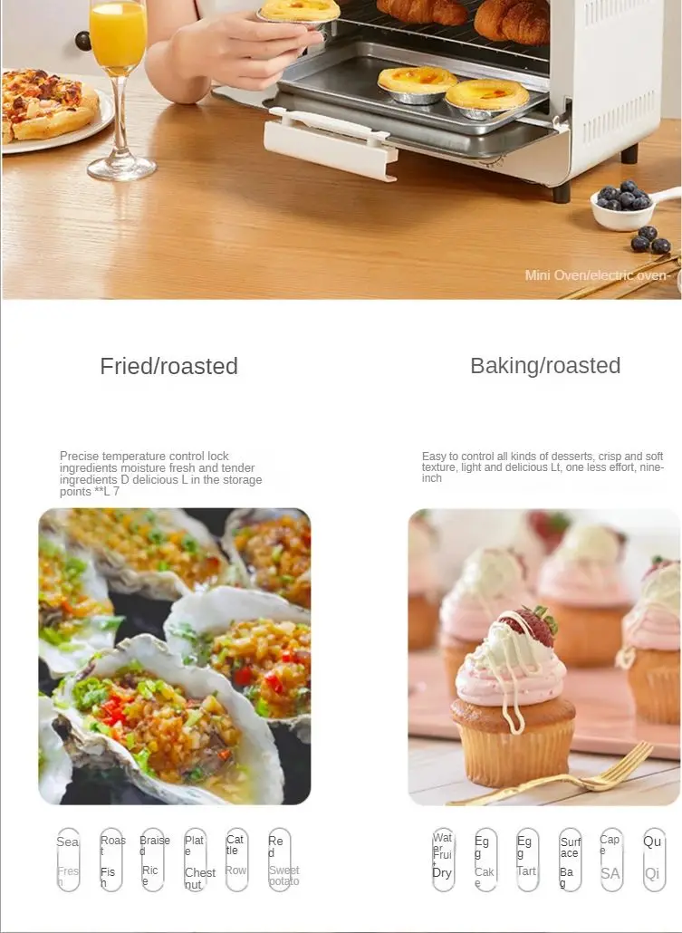 이 미니오븐은 10L의 컴팩트한 용량으로 1~2인 가구나 자취러에게 딱이에요! 공간 차지도 적고, 주방 한 켠에 두면 인테리어 효과까지 톡톡히! 작지만 닭날개, 립, 해산물, 케이크, 에그타르트 등 웬만한 요리는 다 할 수 있어요! 🍗🧁