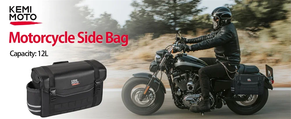 Motorcycle Saddle Bag 12L Universal Side Tail Bag Motorbike Riding Travel Bags with Rain Cover Rear Seat Bag Pannier Accessories